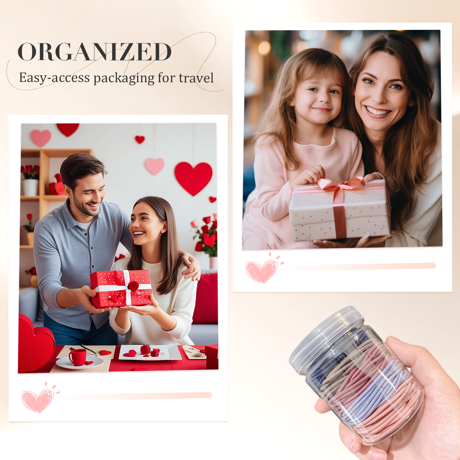 CONVENIENT STORAGE AND EASY ACCESS – The compact jar makes storage and access simple. No more tangled messes—just grab a hair tie when needed. The jar keeps everything neat, organized, and ready for quick use on the go.