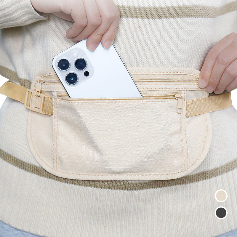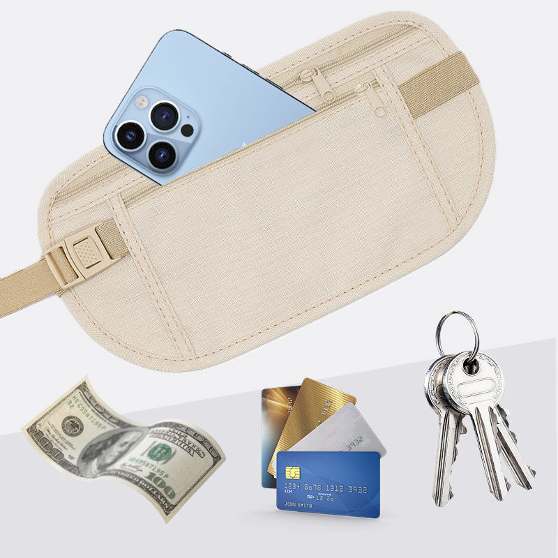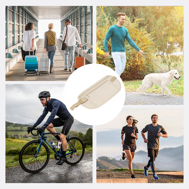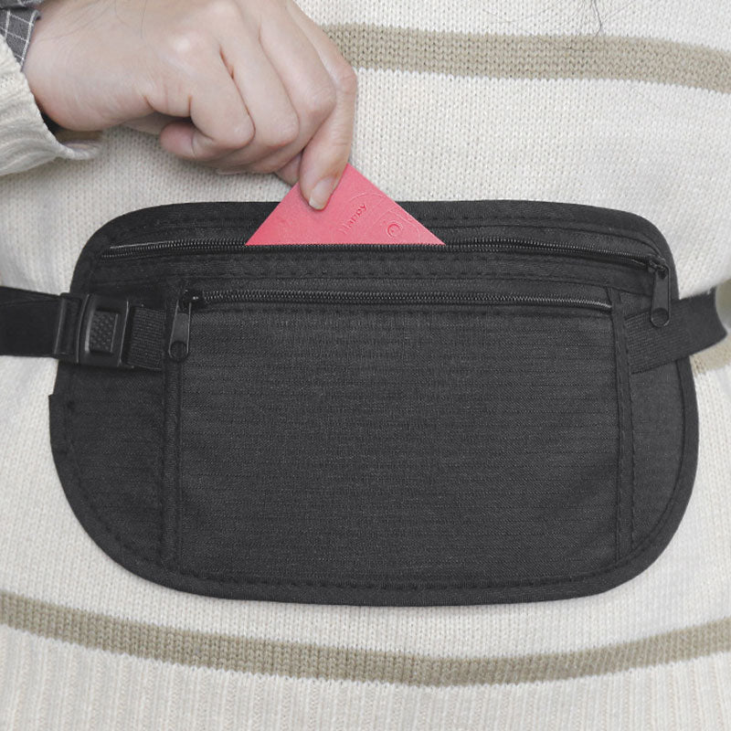 Diskret og lavprofilert design: Designet for å bæres under klærne dine, holder dette slanke, lette pengebelte dine verdisaker sikre og skjult for synet, noe som gjør det til en ideell anti-tyveri-løsning mens du reiser.