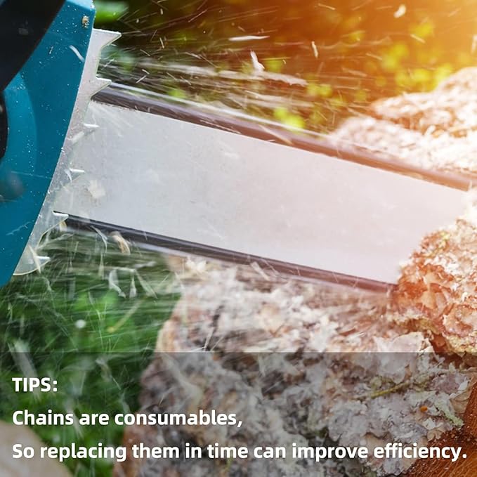 Å kutte jevnt, lavt tilbakeslag: Sagkjeden kutter glatt og raskt med minimum tilbakeslag. Slitesterk, lav-kickback, lav vibrasjonskjede hjelper til med å redusere brukerutmattelsen for økte perioder med arbeid, designet for huseiere og anleggsgartnere.