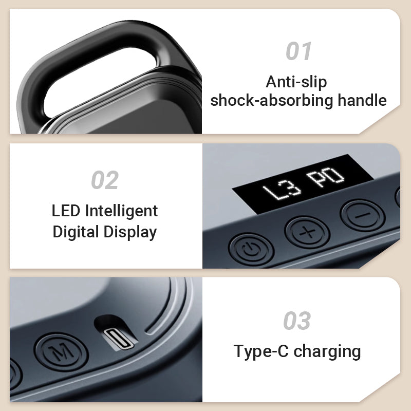 DYP PENETRASJONSTERAPI: Høyfrekvente vibrasjoner trenger dypt inn i muskellagene og retter seg mot sårhet og tretthet mens de aktiverer energipunkter for å slappe av hele kroppen og lindre stress.