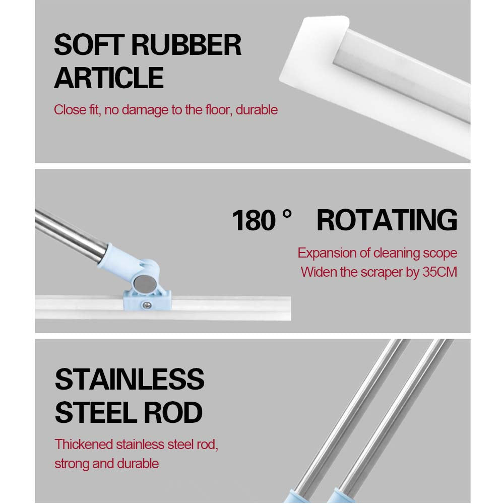 180˚ Rotating Head: Broom har et nylig designet 180 ° roterende hode for enkel rengjøring under sofaen, sengen, rengjøring av skrivebordet, feiing, rengjøringsvinduer, mopping vann, fjerne kjæledyrhår, fjerne kjæledyrpels, bordet eller andre møbler. Fjerner enkelt stående vann på badet, fet olje på kjøkkenet og etterlater ikke stående vann. Renser alle vanskelig tilgjengelige steder og beskytter håndleddet mot smerter.