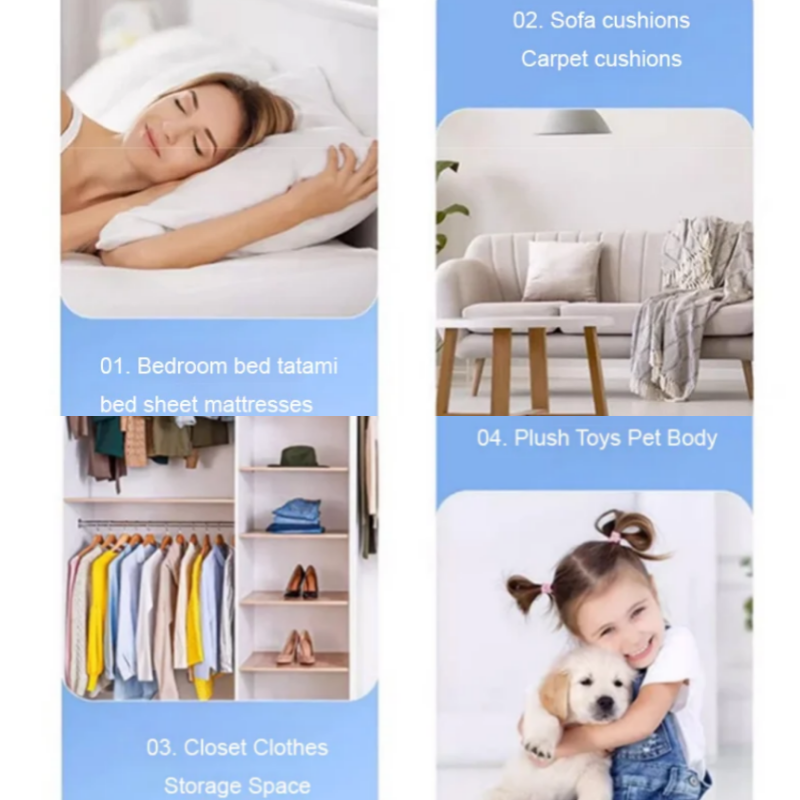 Kraftig middfjerning: Inneholder avanserte anti-middfaktorer som trenger dypt inn i stofffibre for effektivt å undertrykke middvekst og eliminere bakterier. La deg ikke lenger bli plaget av midd og nyte et mer behagelig og hygienisk bomiljø.
