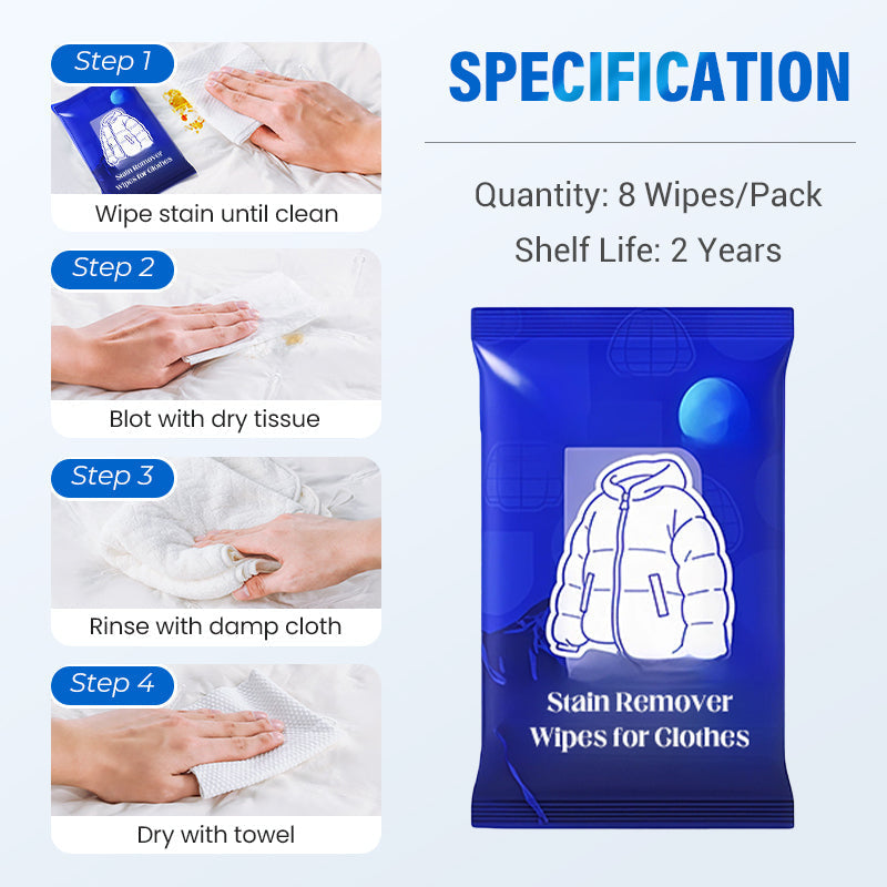 Package Include: 1* Stain Remover Wipes for Clothes